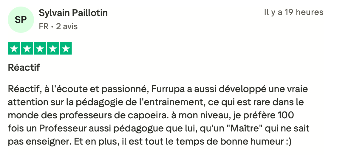 J'ai 41 ans. 30 ans de CapOeira. Et je n'ai jamais aussi bien joué qu'aujourd'hui.